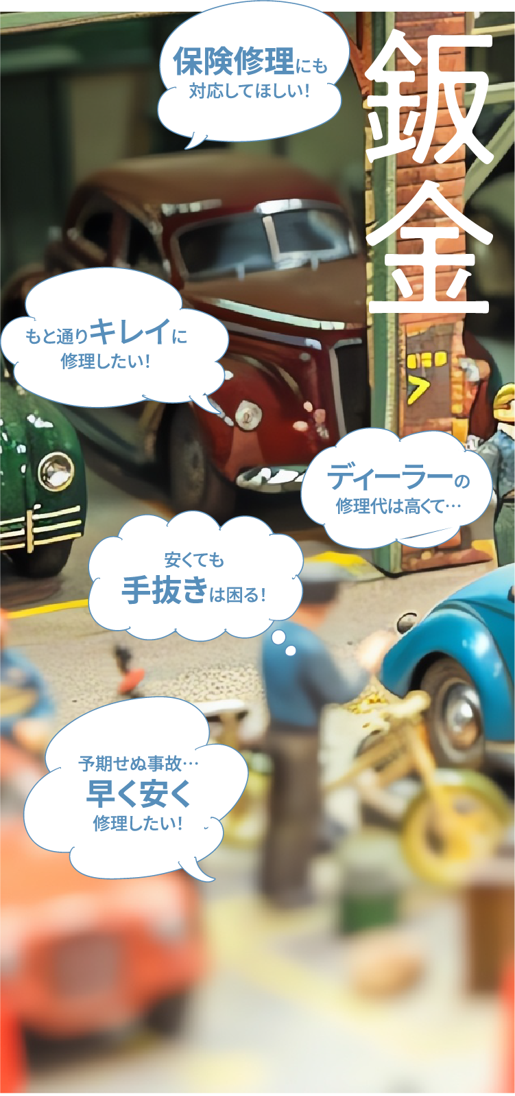 鈑金や修理が可能か、部品の交換が必要かなど、車の修理方法はさまざま。依頼する会社によって見積金額もバラバラです。まとまった金額になることが予想されるだけに、納得のいく会社に任せたいですよね。